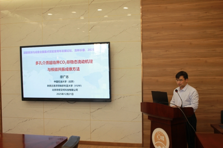 在学术报告环节,国防科技大学理学院江天研究员、中国石油大学(北京)碳中和示范性能源学院廖广志教授、哈尔滨工业大学潘东华研究员、北京师范大学赵惊涛教授以及吉林大学仪器科学与电气工程学院黄兴国教授、佟训乾教授、张洋教授、杨玉晶副教授、董新桐副教授等九位学者,分别就光频梳星间链路、多孔介质CO₂流动与核磁共振成像、时间散射理论、无线地震仪数据聚合、城市地下空间电磁探测、浅地表磁共振技术、零磁环境装置、深地绕射波成像、深度学习全局建模等前沿课题作了精彩报告。报告内容涵盖方法创新、技术研发与工程应用,充分展现了深部探测与成像领域的活跃研究态势和交叉融合特色。