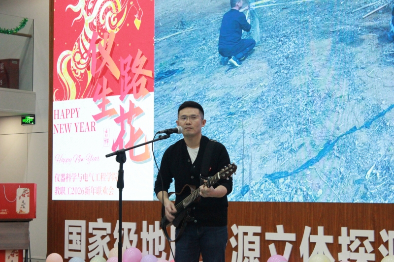 在一片欢声笑语中,新年联欢会拉开序幕。实验教学中心教师代表表演了空灵鼓演奏《中华民谣》,国家工程中心教师代表表演了吉他弹唱《曾经的你》,仪器系教师合唱歌曲串烧《我和我的祖国》《爱你》《我爱你中国》等,电气系教师带来歌曲合唱《年少的你》《强军战歌》和精彩的魔术表演,辅导员、新留校博士后等表演了歌曲合唱《一路生花》和舞蹈《“仪”起跳舞》。