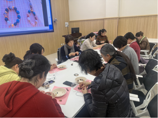 现场氛围热烈而温馨,大家暂时卸下工作的忙碌,化身心灵手巧的创作者,大家一边穿针引线、串联珠饰,一边畅谈生活与工作中的点滴,在动手实践中舒缓压力,在互动交流中增进情谊。