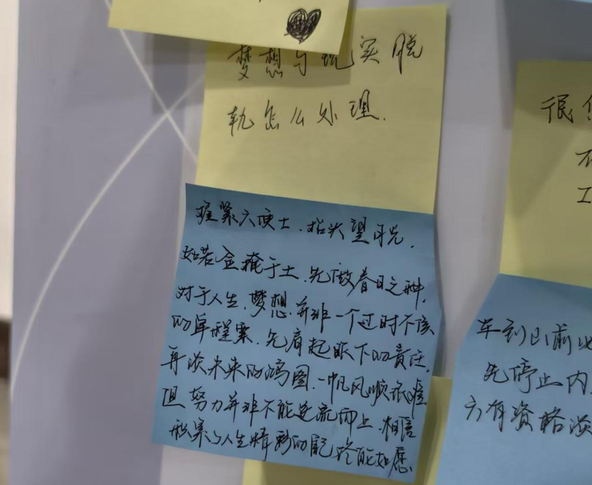 活动现场,同学们使用便利贴匿名写下自己的烦恼并张贴于活动墙,其他同学则以匿名方式在旁回复鼓励话语或实用建议,积极互帮互助、排解烦恼。此次活动由仪器科学与电气工程学院学生会心理部部门成员定期整理内容,严格保护了参与者的隐私,让同学们能够更安心、自在地参与活动。