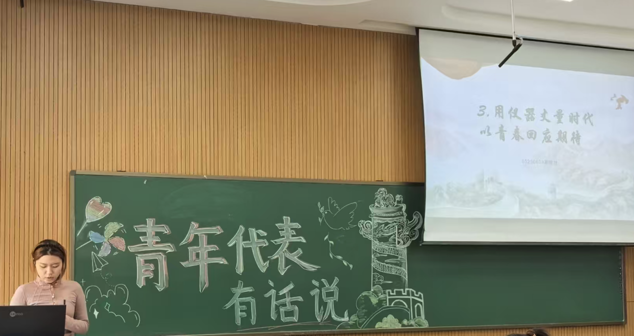 本次活动设置青春代表演讲、两会热词你画我猜、青年心愿盲盒、投票评选颁奖四大环节。青春代表演讲环节,青年学子围绕科技创新、新质生产力、青年成长等议题阐述观点、提出提案,展现出扎实的思辨能力与社会责任感。“你画我猜”互动环节中,同学们通过简笔画竞猜“新质生产力”“共同富裕”等两会热词,在趣味互动中加深对两会精神的理解。青年心愿盲盒环节,现场随机抽取同学们匿名写下的心愿并展开讨论,汇聚青年心声、促进思想交流。