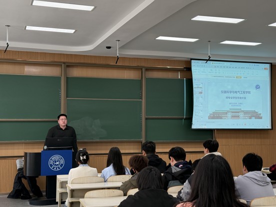 为助力转专业学生快速适应新环境、明晰学习与生活规划,2026年4月2日,仪器科学与电气工程学院召开转专业学生年级大会,2025级本科生辅导员史博日老师、2025级各班班长及全体转专业学生参加会议。