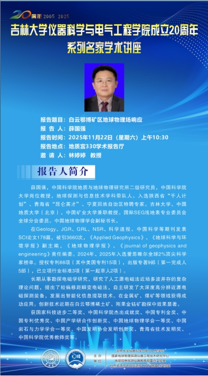 吉林大学仪器科学与电气工程学院成立20周年系列名家学术讲座——薛国强 中国科学院地质与地球物理研究所