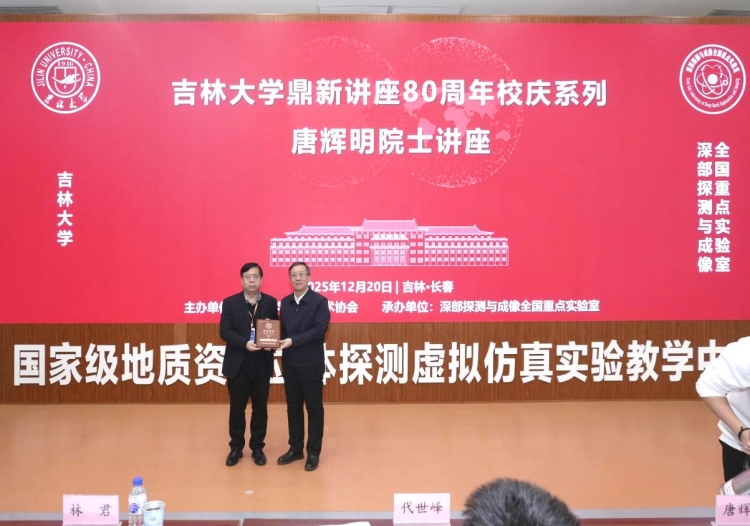 在主题报告环节,唐辉明院士以“三峡库区滑坡与河谷协同演化机制”为题,深入剖析了地质灾害与河谷演化的内在关联,为地质灾害防治提供了重要学术依据。代世峰院士聚焦“煤中战略性关键金属矿产”,系统分享了该领域的前沿最进展与发展前景,为资源高效开发利用指明方向。吉林大学党委常委、副校长边铁为两位院士颁发“鼎新讲座”证书,以表彰他们为推动学科发展作出的重要贡献。
