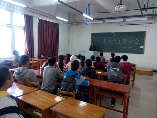 此次班会由二班团支书、心理委员策划主持,以游戏为主要活动形式,旨在促进大家的沟通,增强集体荣誉感。班会开始之前,全班被随机分成5个小组并各选组长一名。第一项活动为:心理游戏——“穿越雷区”,每组派出2名同学,一名同学在蒙住眼睛的情况下,根据队友的指挥通过障碍区,比赛制调动了同学们的积极性,现场气氛十分活跃。接下来是“你说我听”环节,同学们坐下来诉说心事,进行了一场心贴心的交流。