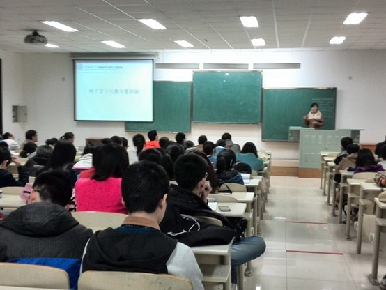 讲座上,裴利然同学首先了解了2013级同学的学业情况,并以自身为例,鼓励大家努力学习、积极参与动手实践活动;此外,她向大家详细介绍了学校电子设计大赛的发展历程及我院学生近年的获奖情况;随后,她跟同学们分享了自己多次参加电子设计竞赛并取得优异成绩的经验,并鼓励大家要积极地将所学的专业知识与动手实践有机结合,她动员2013级全体同学积极参加到即将举行的校电子设计竞赛中,鼓励大家认真选题、大胆创新,力争在今年的校电子设计竞赛中再创佳绩。讲座结束后,裴利然同学还耐心地与2013级同学进行了交流与沟通,针对同学们提出的问题给出了宝贵的意见。