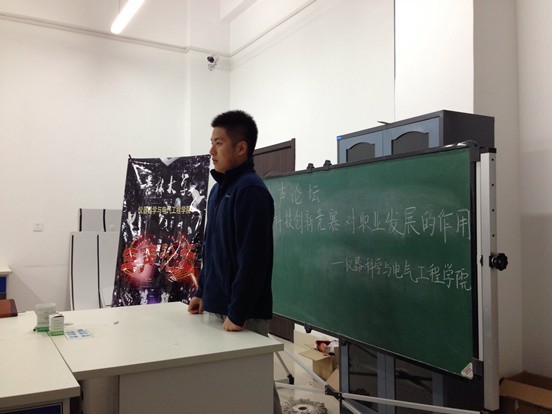 为进一步学习贯彻党的十八大、十八届三中全会精神,认真开展“我的中国梦”教育实践活动,围绕青年学生关注的热点焦点及时事问题,充分运用学术的逻辑、历史的逻辑和现实的逻辑教育引导青年学生,努力为青年学生搭建合理表达、畅谈心声的良好平台,培养学生的思辨能力和语言表达能力,不断引导广大青年学生树立正确的人生观、世界观和价值观,仪器科学与电气工程学院团委组织策划了“生声论坛”系列活动。2014年4月25日第九期“生声论坛”活动以“科技创新竞赛对职业发展的作用”为主题在中心校区李四光实验楼533室成功举行。